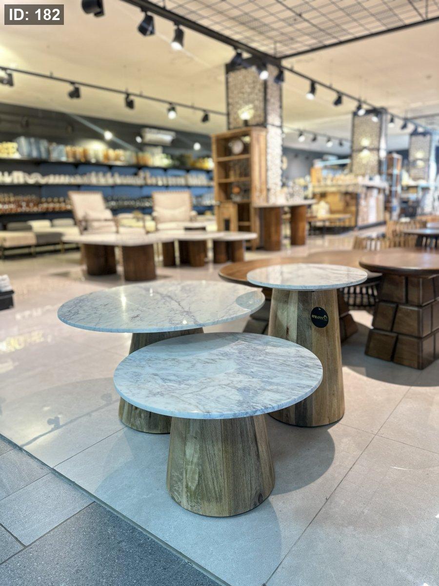 סט של 3 שולחנות עץ מנגו עם זכוכית
